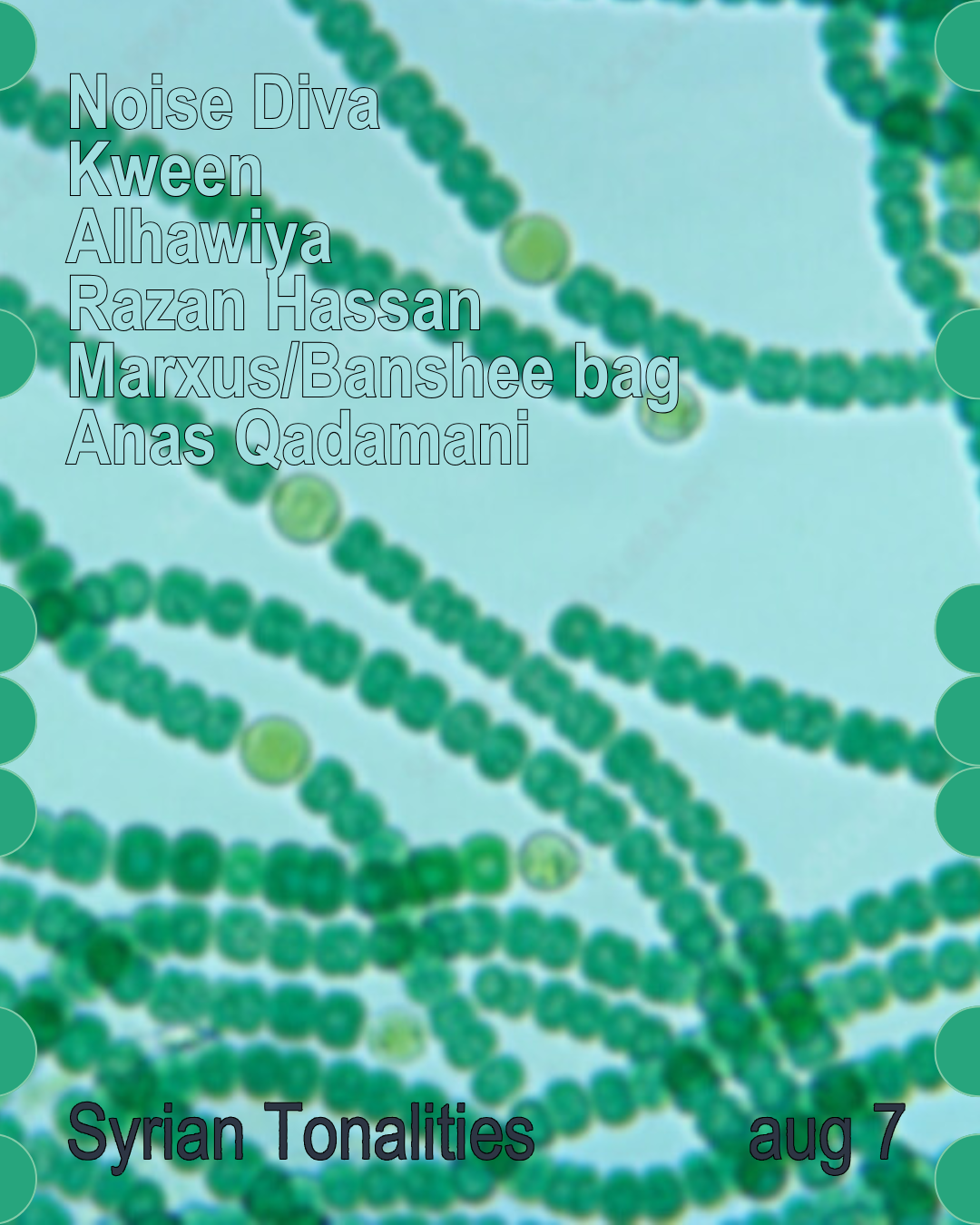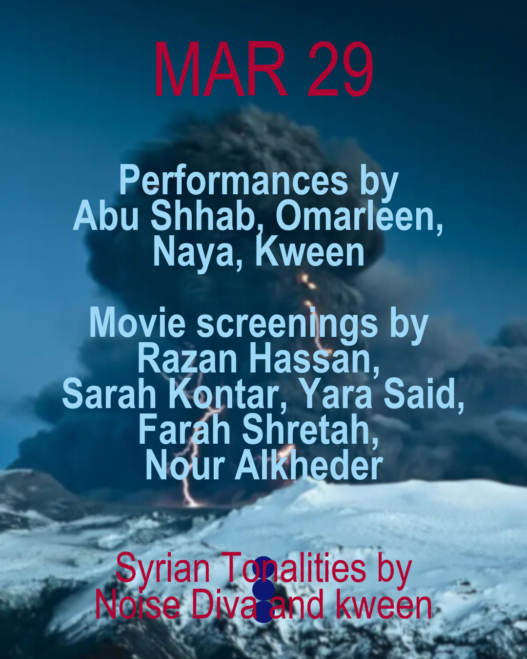 Together with Yara Said/Noise Diva Amsterdam-based event series platforming Syrian artistic practices across performance, music, film, and visual arts, from with-in mother land, and Diasporic.