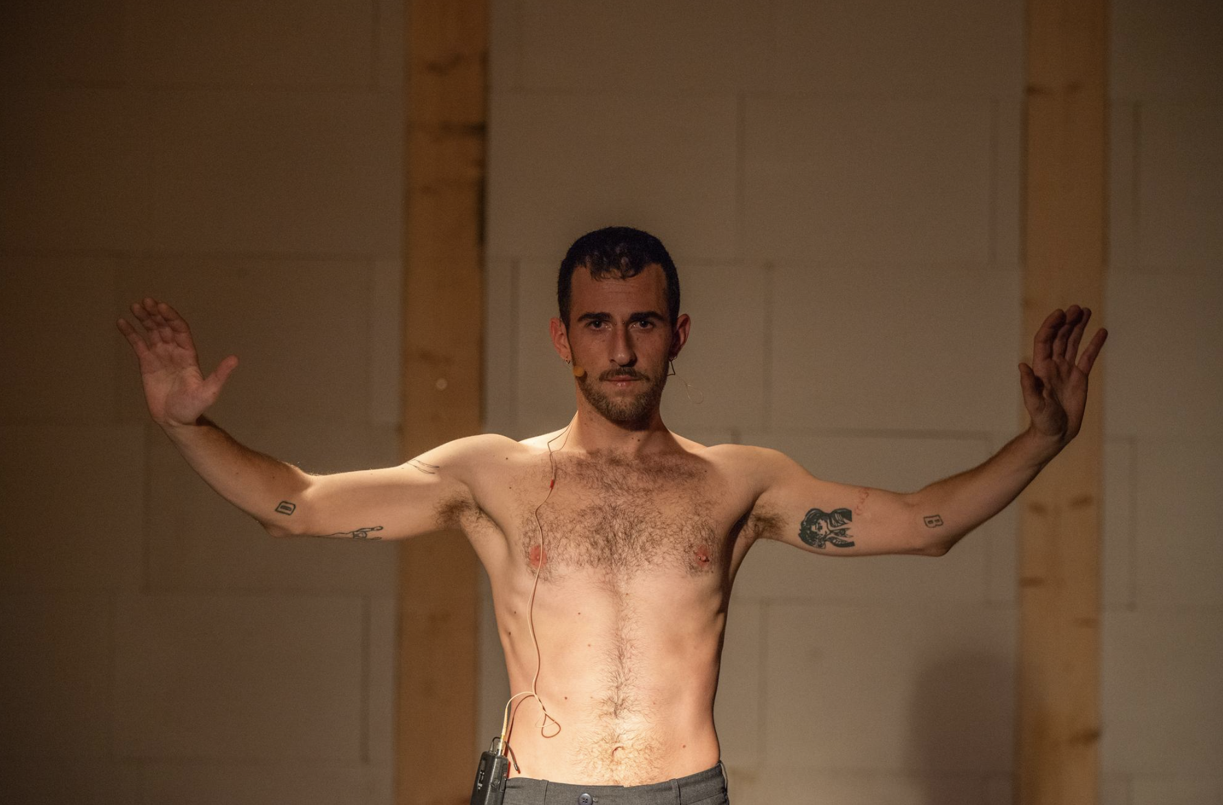 21/072024, Centrale Fies, Dro, Italy. Is a solo performance that delves into the themes of intimacy, imagination, family structures, and class difference. By gathering personal recollections of youth, queer desire, and rural life, the work explores an ongoing quest for validation, within the context of labor. Combining auto-fiction and repetition, the work dissects the mechanisms that shape our sense of self-worth, identity, and social belonging. The representation of three characters, (the grandfather, the mule, and the author himself) compose an examination of how personal experiences intersect with larger societal structures and shared narratives.