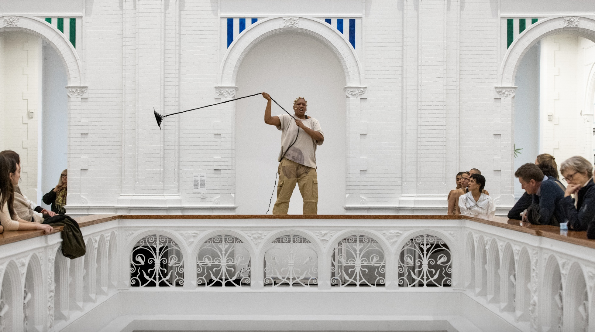 The next scene is central to the show and is treated as the dramaturgical peak, where another controversy is revealed and tended to, caressed, loved, hated, integrated. The intensity of this scene breaks into the last scene of the show, where a cynical, almost absurd controversy is delivered. Here, the audience laughs and giggles at the ridiculousness and abrupt switch of all variables. We, at this moment, attend to the play with cultural signifiers that reveal themselves to be a very narrow space through which to understand a person. Yet everyone is confronted with a flux they are unable to deny, 'what kind of prejudice have I carried all my life?!’
